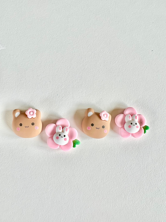 Pink Flower Bunny & Brown Teddy Charms Bag of 4