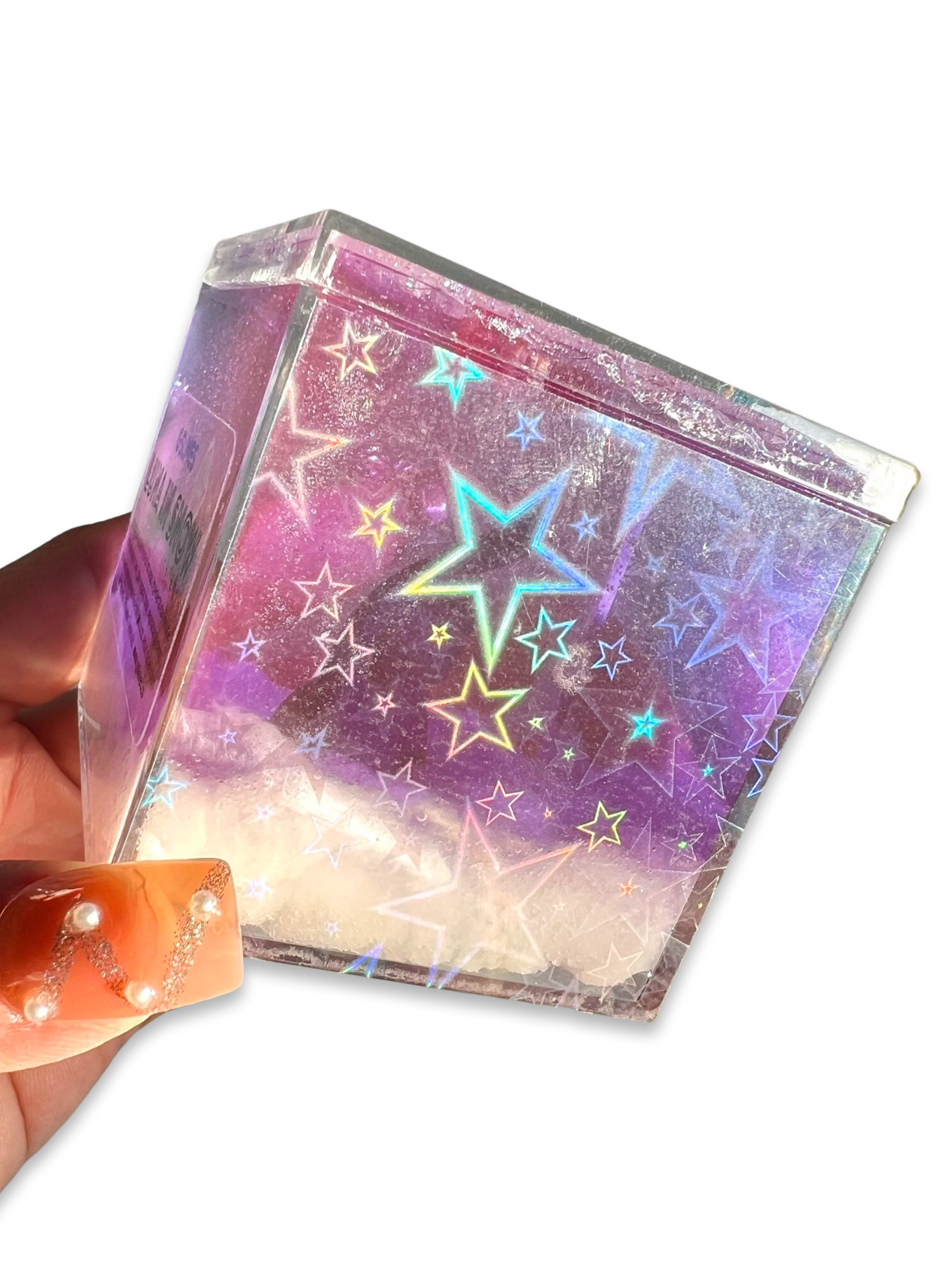 This is slime features the adorable Luna from Sailor Moon in “snow” and stunning iridescent-neon purple that looks like it’s glowing. There are floating 3D stars with sparkles and holographic stars filling one complete side of the cube, adding to the magical look. This slime is glossy, thick, soft and stretchy. Available exclusively from GSLIMES! Follow us and enjoy complete ASMR slime videos!