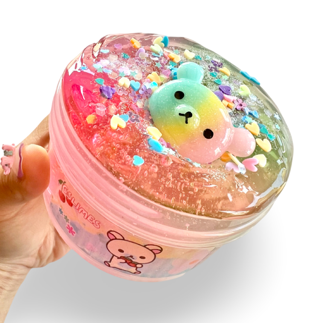 This super pretty Rilakkuma slime is medium thick and inflates mildly with nice bubble pops.