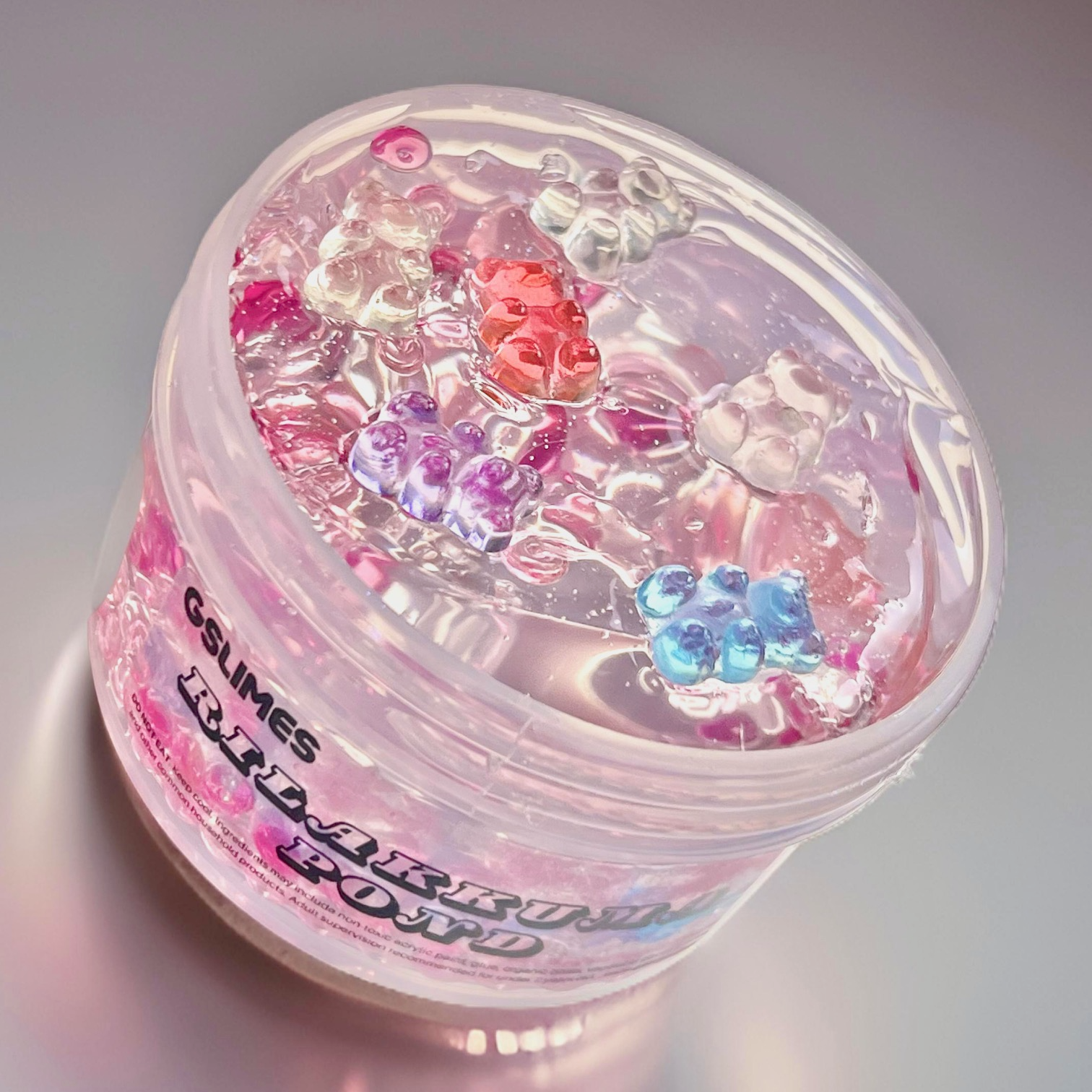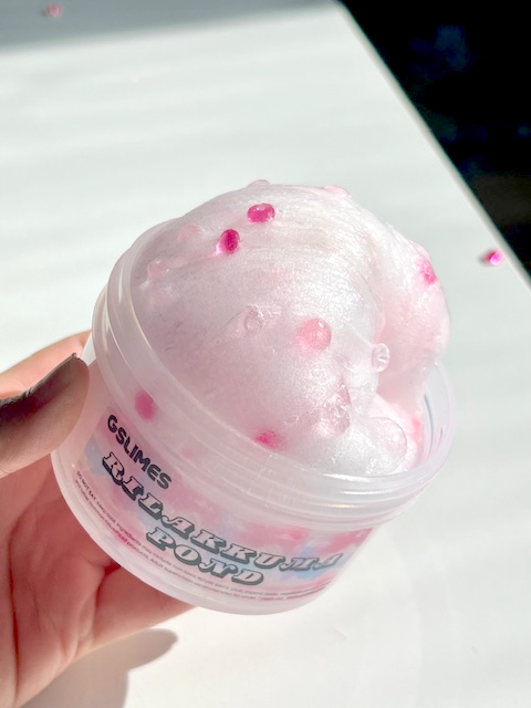 This slime is filled with pretty shades of pink beads and comes with 6 random color bear charms. It is a nice hunk of slime to hold in your hands and makes amazing bubble pops. This slime is perfect for all thick clear slime fans! This slime is glossy, thick, stretchy. Check out the ASMR videos: