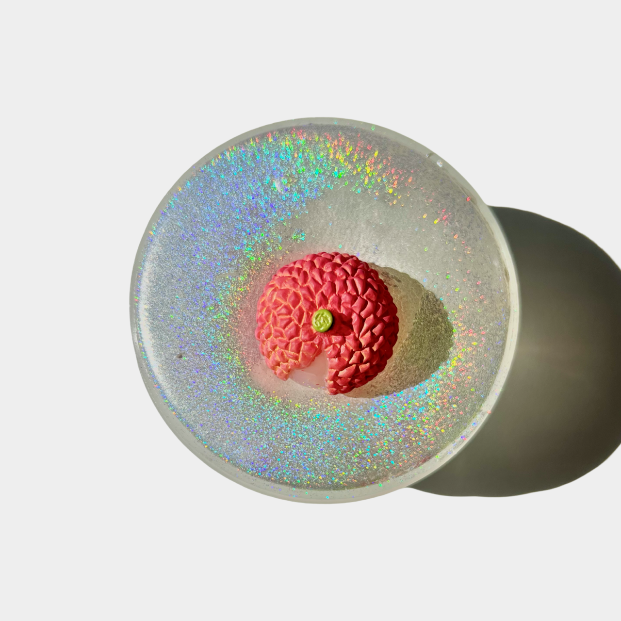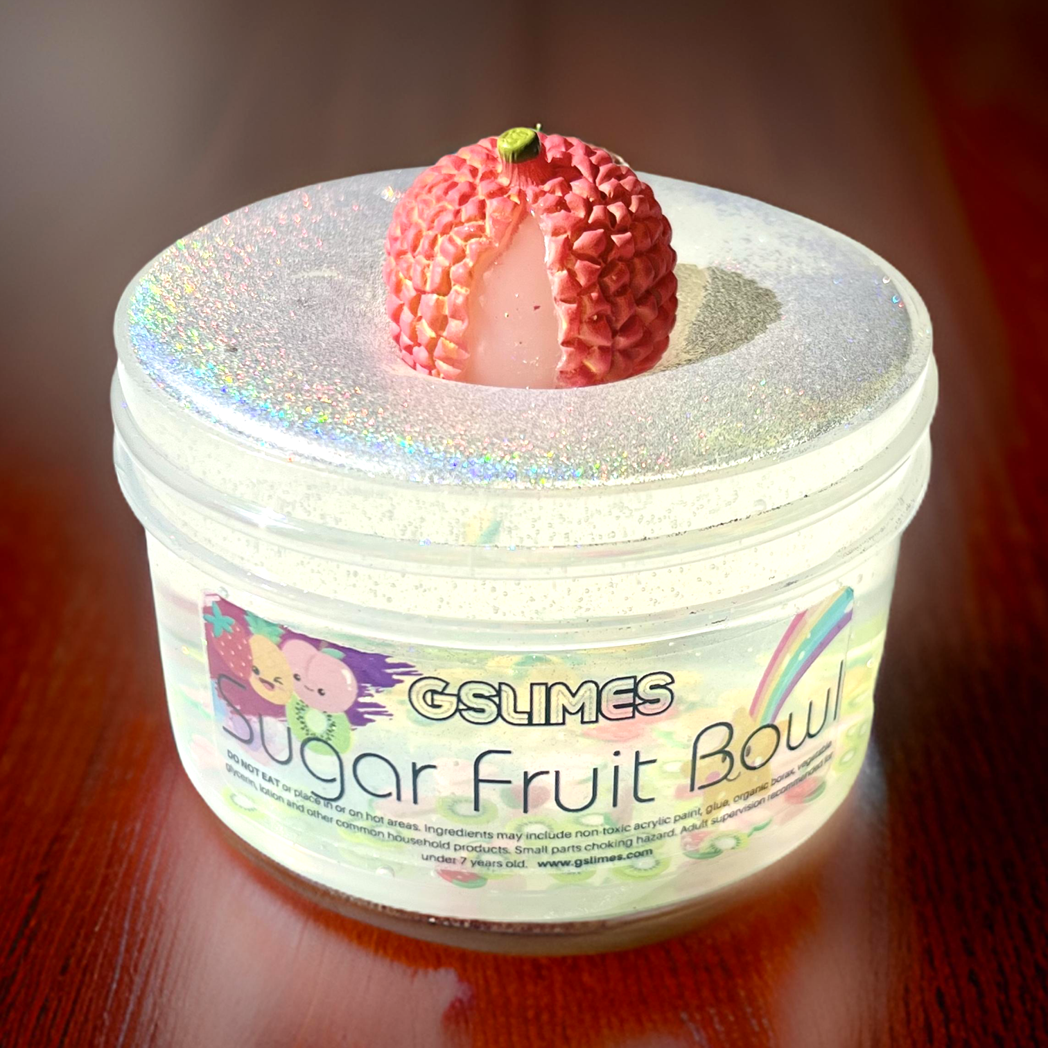 Sugar Fruit Bowl is filled fruit sprinkles and holographic top. This slime comes with a cute lychee charm, it is a nice hunk of slime to hold in your hands and makes amazing bubble pops. This slime is perfect for all thick clear slime fans! This slime is glossy, thick, stretchy. Check out the ASMR videos: